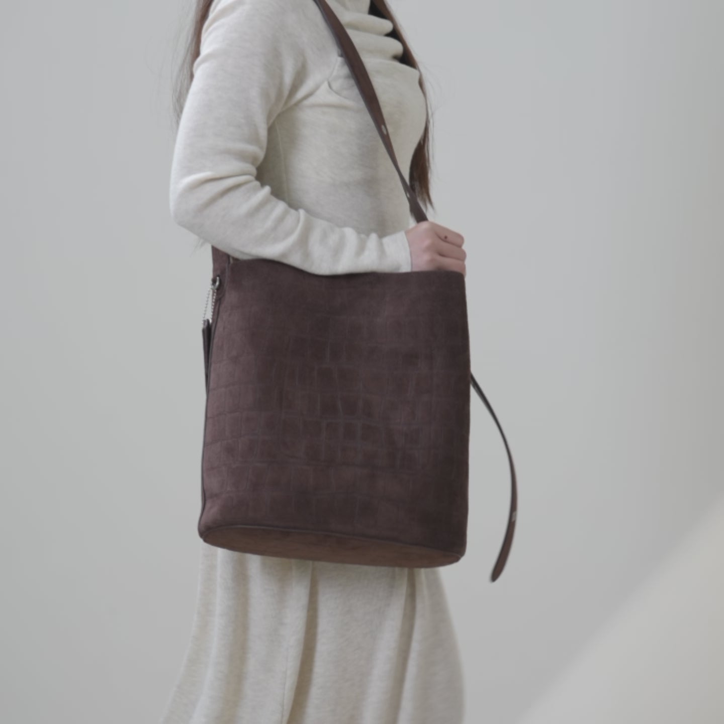 Journion Brown Bucket Crossbody Bag With Zippered Pocket